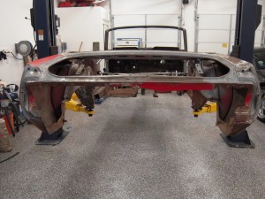 The project started with the purchase of a rolling chassis from an owner in South Carolina. The car was described as having some significant rust issues and was priced very reasonably and acoordingly. We took delivery and moved it into our shop for disassembly. That’s when the fun began.